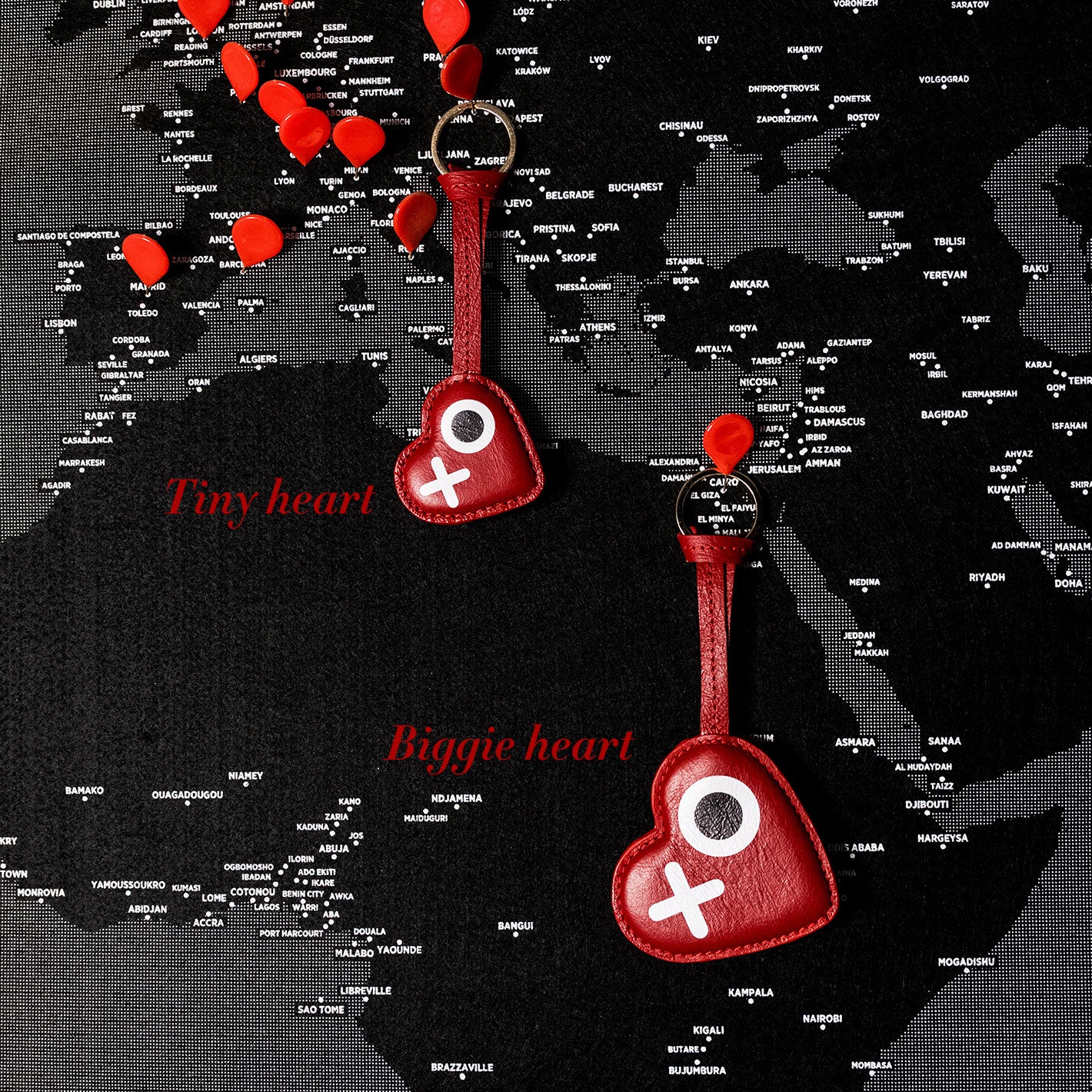 Our XO heart charms are what we're crushing on at the moment. They're ridiculously yummy, made with the most gorgeous red leather, yep, real leather, with our XO heart artwork, and a strap with a keychain/bag-hanging-clip.
